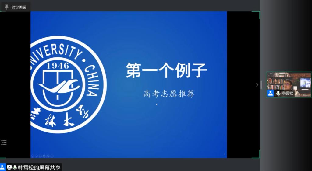 4月14日晚上19:00-20:30以知识落地最后一公里为主题的第二场讲座采用腾讯会议直播方式进行。计算机科学与技术学院副教授韩霄松用风趣幽默的语言和启发思维的方式首先向大家提出一系列问题:我们需要了解什么、准备什么、学习什么,我们学的这些知识是否足以搭建一个应用系统?这些问题引起了同学们的思考。韩霄松老师说,其实很多同学有这样的疑惑,我们学习了一些专业课,但是感觉课程和我们见到的使用的应用程序相差甚远,不知道我们学习的东西有什么用。接下来,韩霄松老师以带过的三个项目为例,围绕应用型大创向同学们介绍了每个项目的知识基础和执行流程。最后,韩霄松老师表示大学生创新训练提供了一座从知识到应用的桥梁,希望大家把学到的知识落地成具体的应用,从而形成真正的生产力。