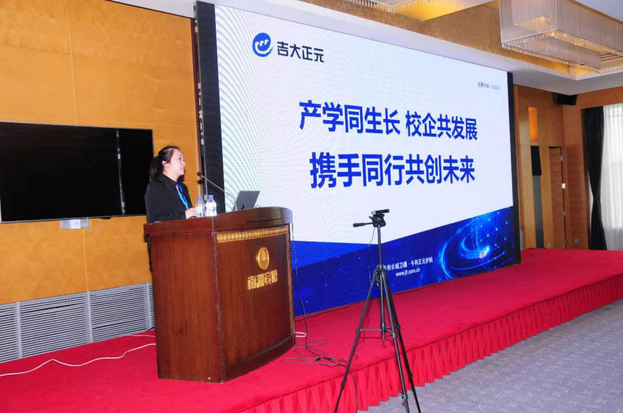 吉大正元信息技术股份有限公司研究院院长柴园园教授做了题目为《产学同生长 校企共发展 携手同行共创未来》的报告